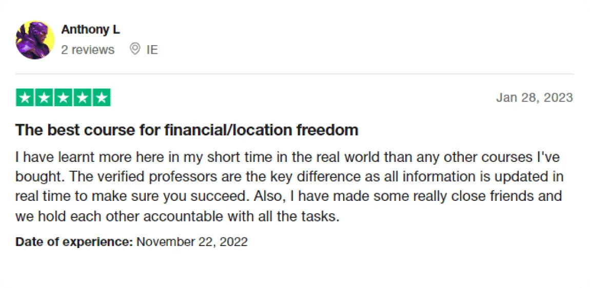 Our modern, practical approach to teaching has led to tens of thousands of our students generating money from anywhere